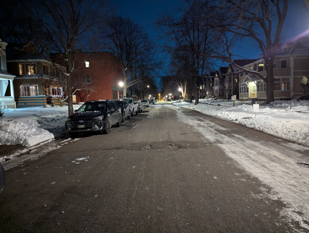 St Paul uses a different system with different flaws, but the largest flaw isn’t with the snow emergency system. The first pass is night plow routes, which includes arterials, and downtown (aka snow emergency routes) and one side of North/South streets. After that, they clear everything else, as in the remaining North/South street work plus all East/West streets. If you’re wondering why St Paul plowing tends to suck, the first reason is this: a massive portion of St Paul’s blocks run East/West so that’s where the majority of the publicly subsidized on-street parking happens. When all cars have to get off East/West at the same time there simply isn’t enough capacity on the half-plowed or fully plowed North/South side street to accommodate the demand. So, many people don’t more their cars, leading to plow drivers being unable to plow curb to curb as they weave around cars on both sides of East/West streets.